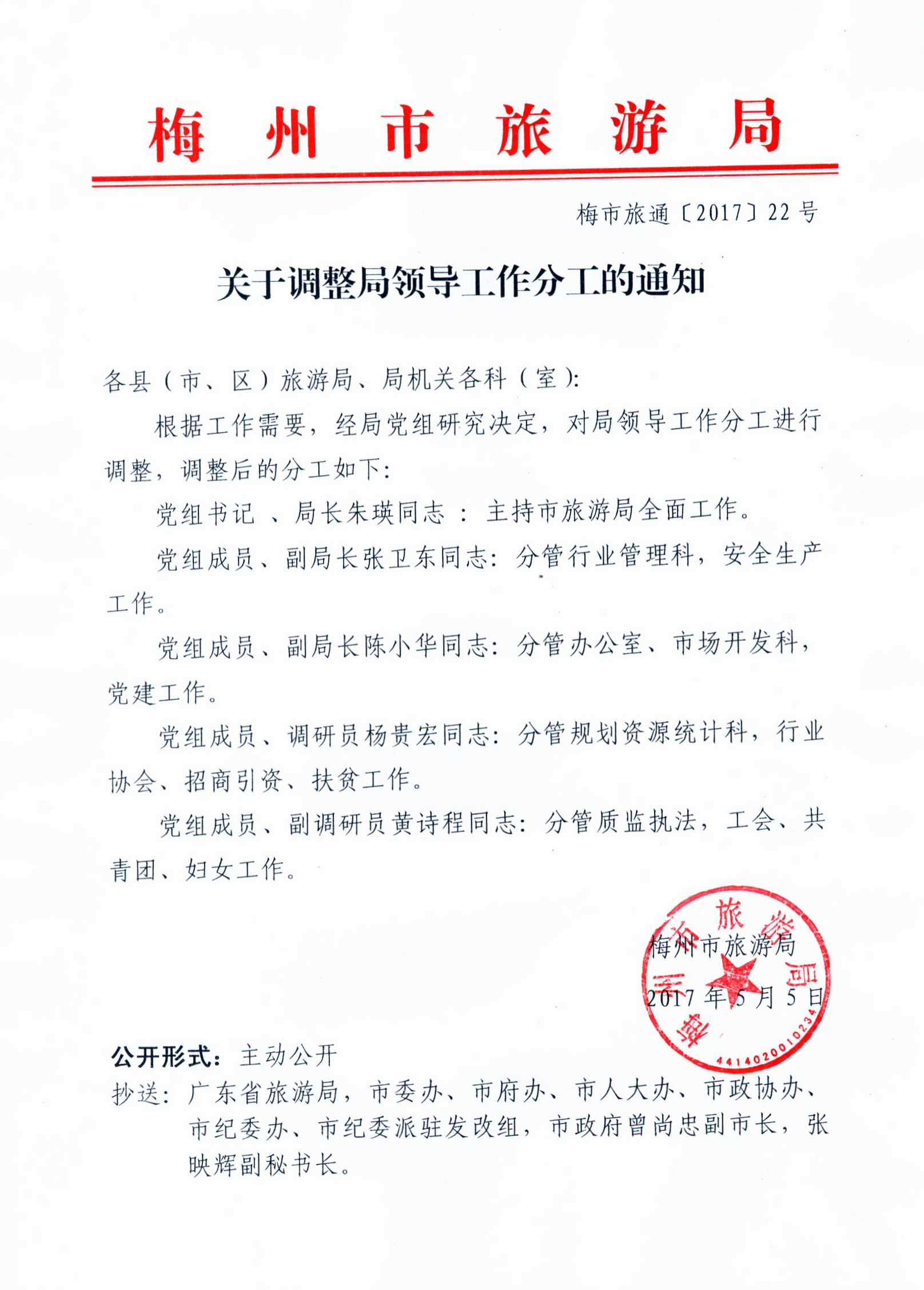 梅州市人民政府門戶網(wǎng)站 梅州市文化廣電旅游局 部門文件 關于調整局領導工作分工的通知