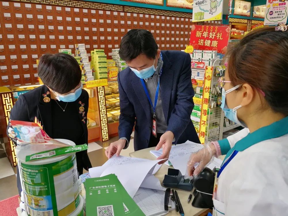 珠海市醫(yī)保局局領(lǐng)導(dǎo)到基層藥店,檢查購(gòu)買(mǎi)發(fā)熱咳嗽藥品登記情況。