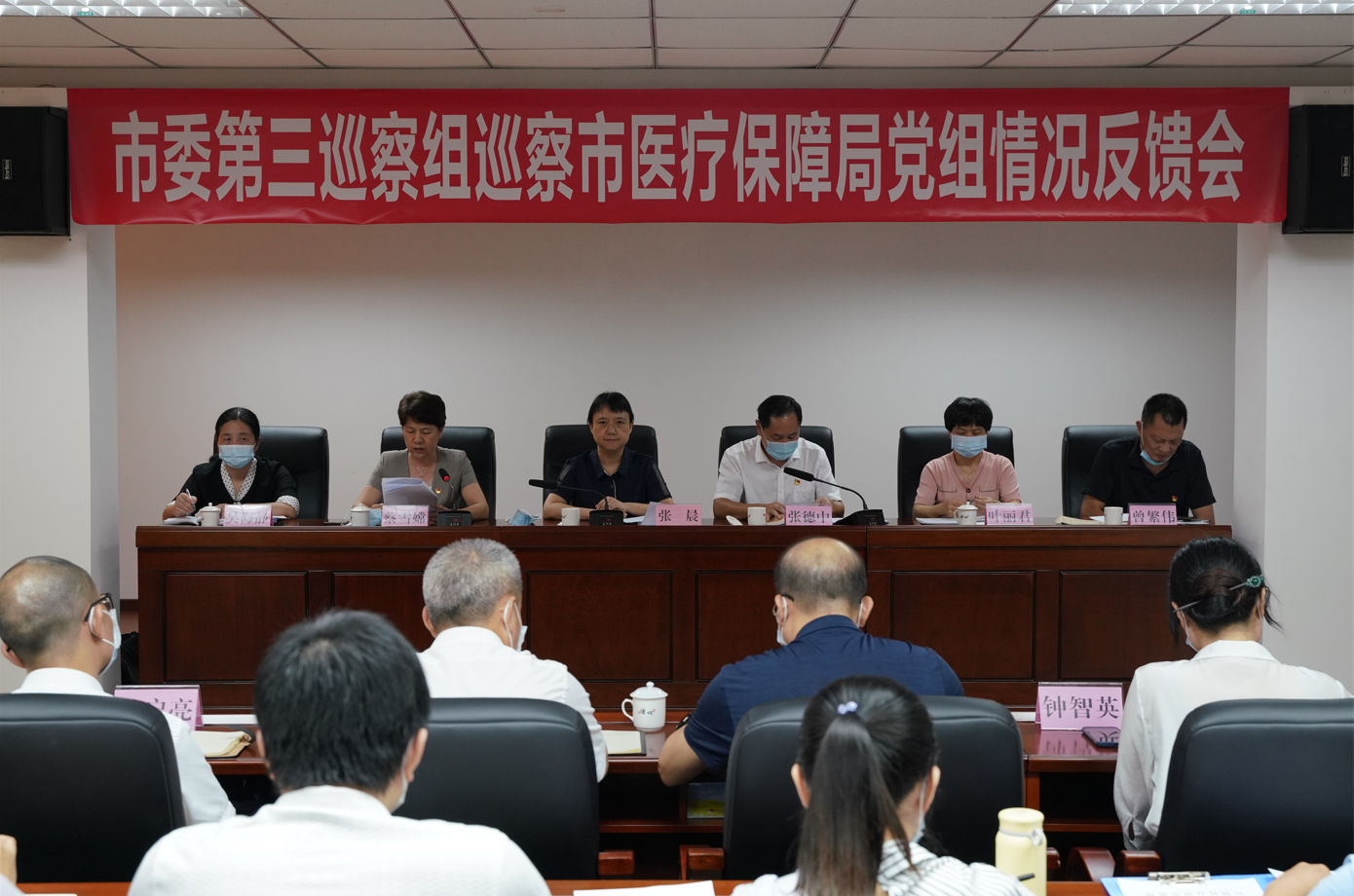 根據(jù)市委巡察工作領(lǐng)導(dǎo)小組的部署,2021年8月18日下午,市委第三巡察組巡察市醫(yī)療保障局黨組情況反饋會召開。副市長張晨傳達(dá)市委書記陳敏同志在聽取七屆市委第九輪巡察情況匯報會上的講話精神,對市醫(yī)療保障局落實巡察整改提出要求。市委第三巡察組組長張德中反饋巡察情況,對抓好巡察整改工作提出具體意見。市醫(yī)療保障局黨組書記、局長蔡雪嫦主持會議并作表態(tài)發(fā)言。市委巡察辦副主任葉麗君、市委第三巡察組副組長吳海靜、市紀(jì)委監(jiān)委駐市衛(wèi)生健康局紀(jì)檢監(jiān)察組組長曾繁偉,市委第三巡察組有關(guān)同志,市醫(yī)療保障局和下屬單位全體干部職工等參加會議。