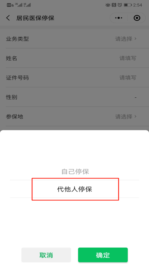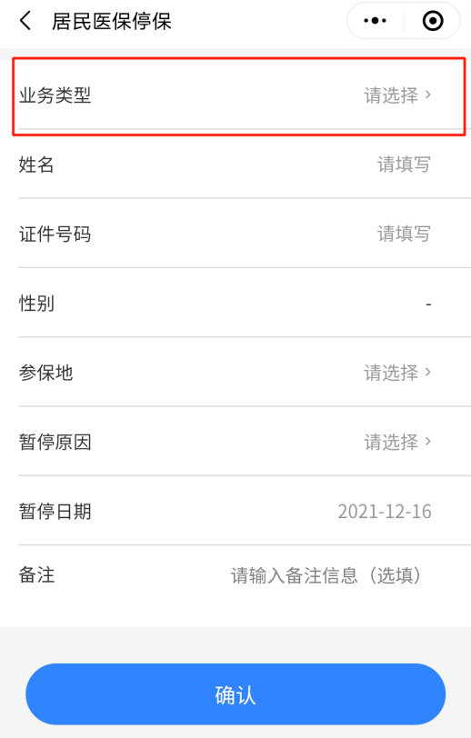 (三)在操作頁面中點(diǎn)擊“業(yè)務(wù)類型”,選擇“代他人停?!?。