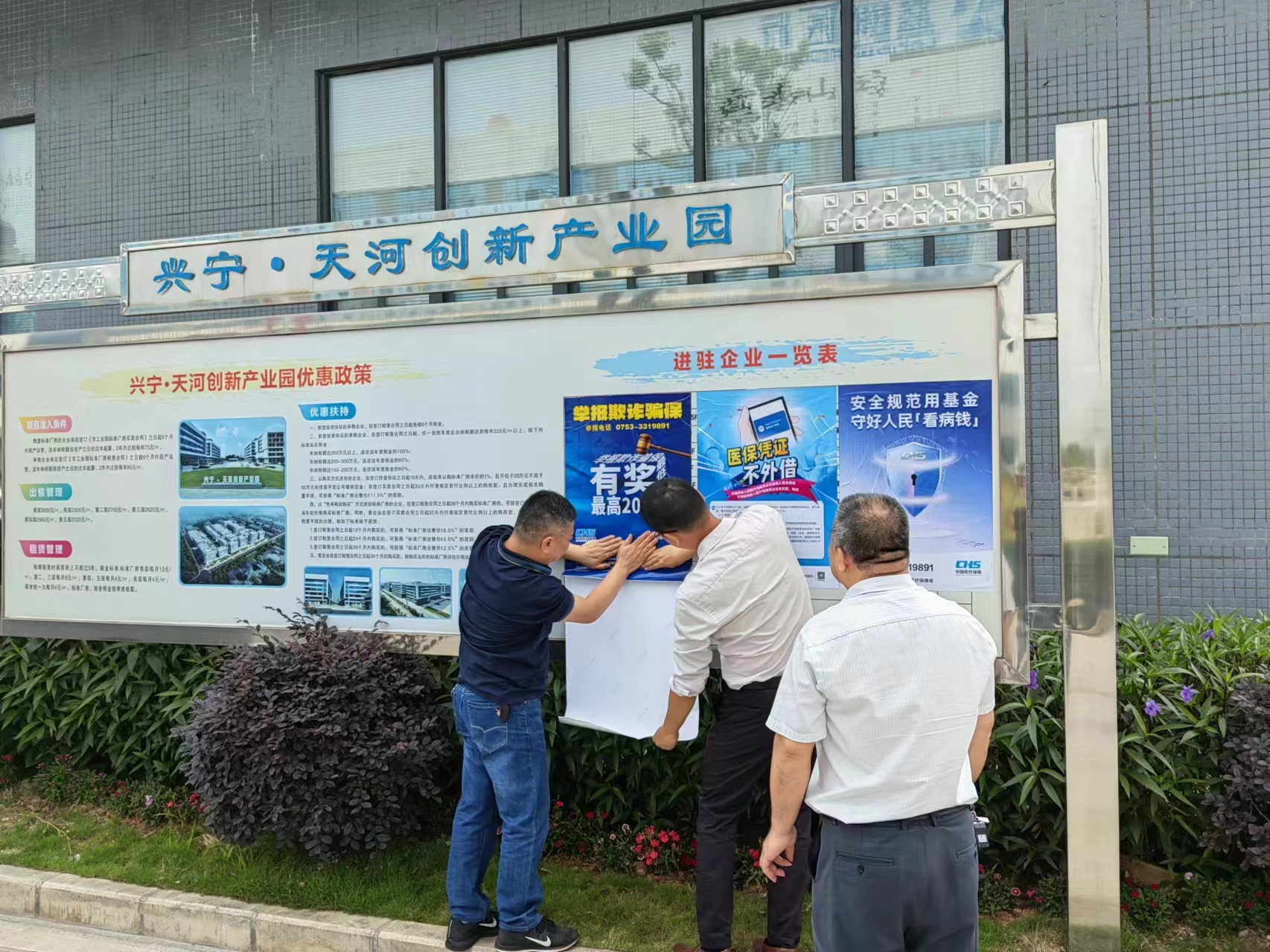 興寧市醫(yī)保局組織宣傳工作人員走進(jìn)工業(yè)園區(qū),在園區(qū)企業(yè)中張貼醫(yī)保基金監(jiān)管宣傳海報,發(fā)放打擊欺詐騙保、醫(yī)保政策等便民宣傳資料。