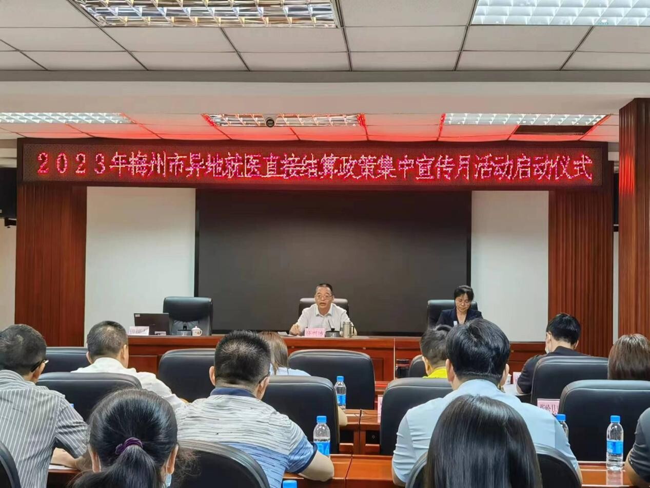 6月9日下午,梅州市醫(yī)療保障局組織舉行2023年全市異地就醫(yī)直接結(jié)算政策集中宣傳月活動啟動儀式,局長薛興冰作動員講話和工作部署。黨組成員、副局長姚清蘭、各縣(市、區(qū))醫(yī)保局主要負(fù)責(zé)人、醫(yī)保中心負(fù)責(zé)人,定點醫(yī)藥機構(gòu)代表等參加啟動儀式。