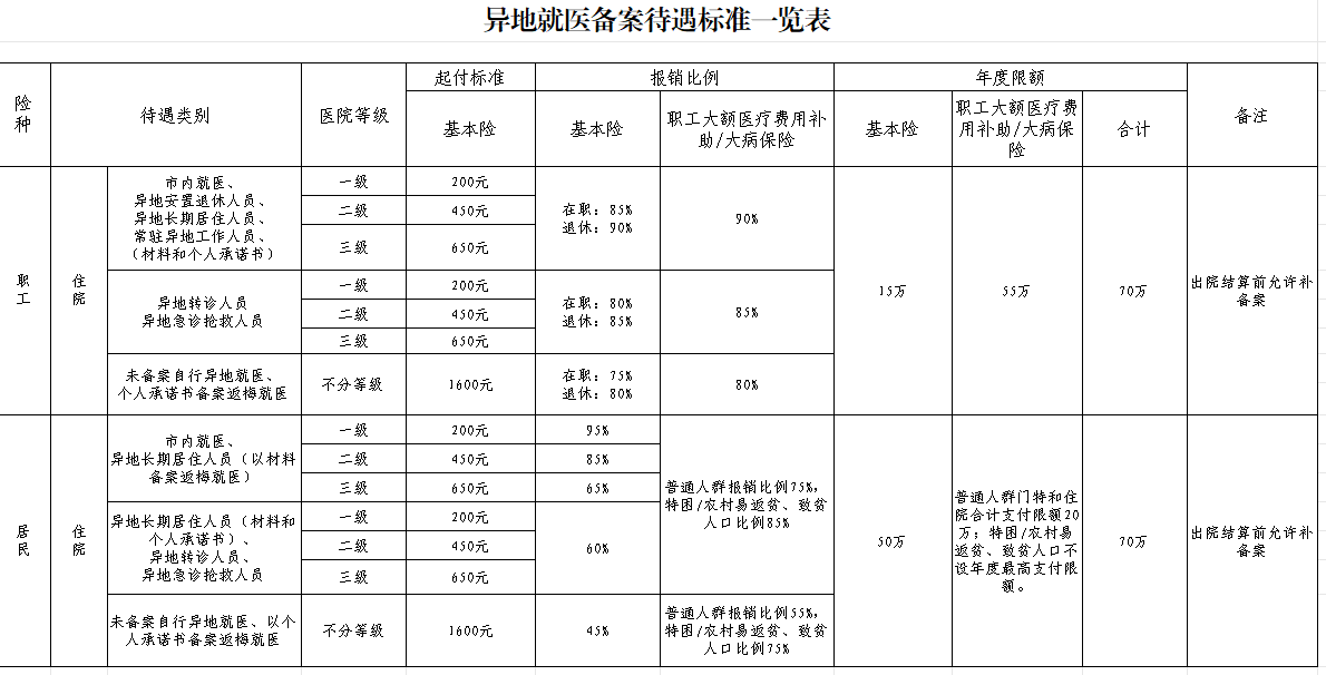 需要注意的是,為最大限度保障參保人的醫(yī)保報(bào)銷待遇,如果參保人在外地因急診搶救就醫(yī)或?qū)儆跓o第三方責(zé)任外傷,未能提前辦理異地就醫(yī)備案,可以直接結(jié)算,享受已備案待遇。參保人員自行外出異地就醫(yī)或者未在就醫(yī)出院前按規(guī)定辦理備案的,也可以異地直接結(jié)算,但享受參保地自行外出異地就醫(yī)的待遇標(biāo)準(zhǔn)。此外,參保人因客觀原因沒有實(shí)現(xiàn)異地直接結(jié)算的,可以持就診發(fā)票、費(fèi)用清單等相關(guān)資料到參保地經(jīng)辦窗口申請手工報(bào)銷。具體報(bào)銷比例看附件