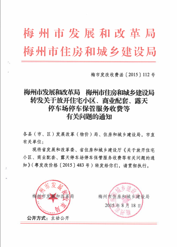 梅州市人民政府門戶網(wǎng)站 梅州市住房和城鄉(xiāng)建設(shè)局 房地產(chǎn)業(yè) 轉(zhuǎn)發(fā)關(guān)于放開住宅小區(qū)、商業(yè)配套、露天停車場停車保管服務(wù)收費(fèi)等有關(guān)問題的通知
