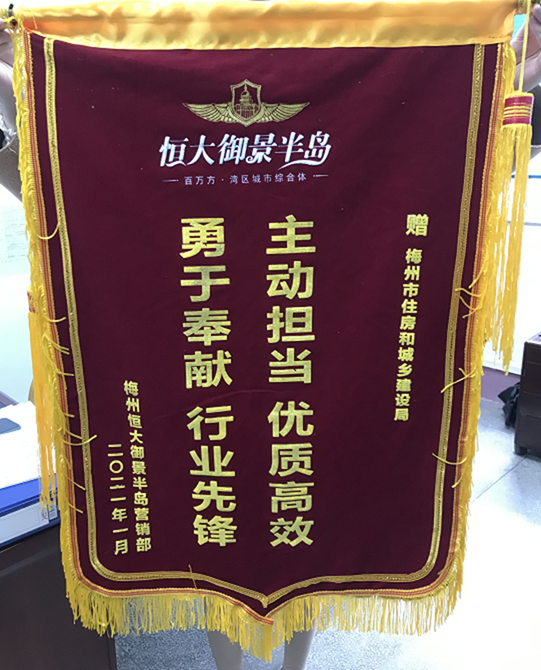 “真是非常感謝你們!”近日,梅州恒大御景半島營銷部送來錦旗,感謝我局一直以來為企業(yè)提供優(yōu)質(zhì)高效服務(wù)、幫助解決所急所需,特別是在疫情期間,出臺紓困政策措施、指導(dǎo)開展疫情防控、依法調(diào)處矛盾糾紛等所做工作,助力企業(yè)克服疫情影響、健康發(fā)展。