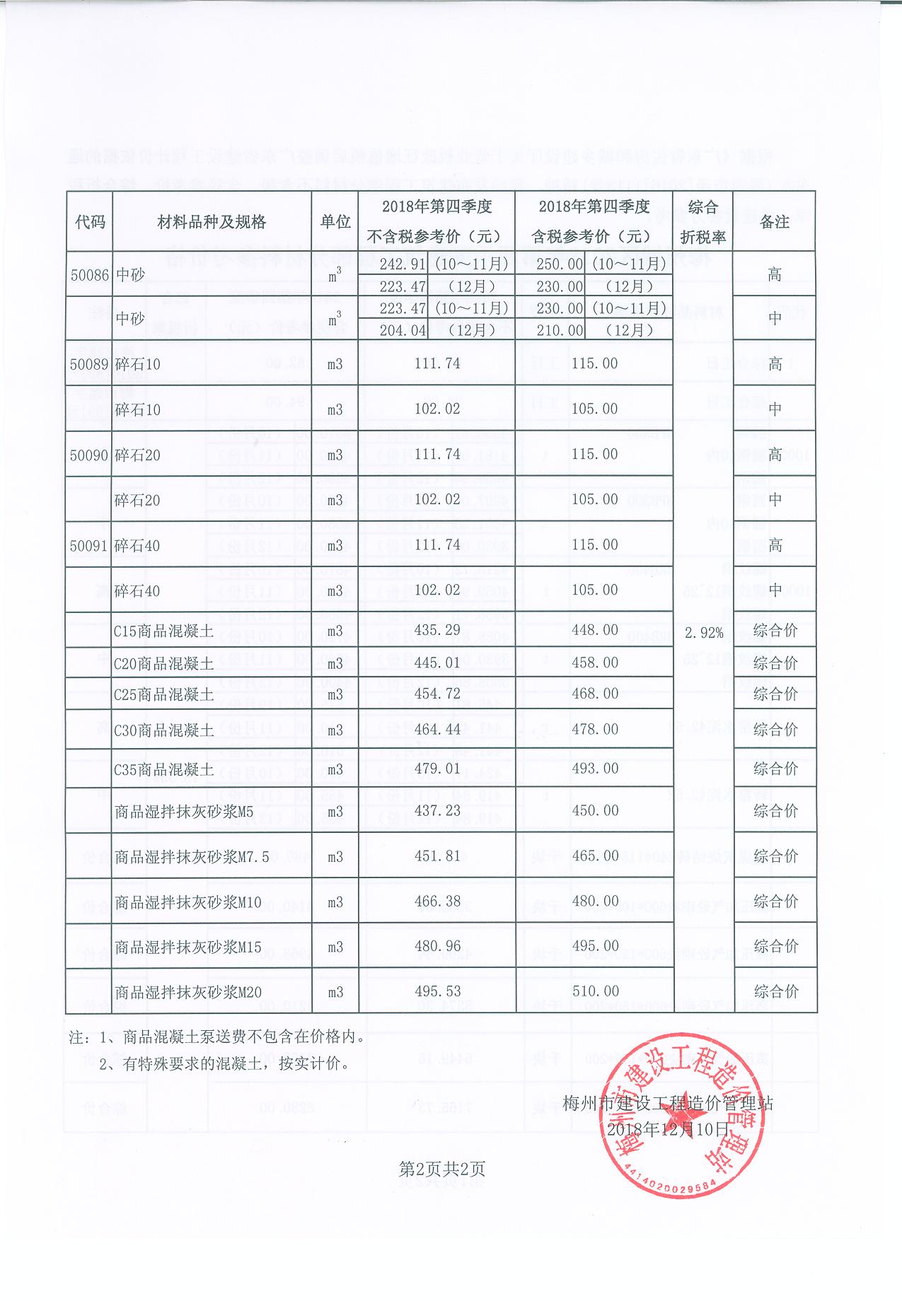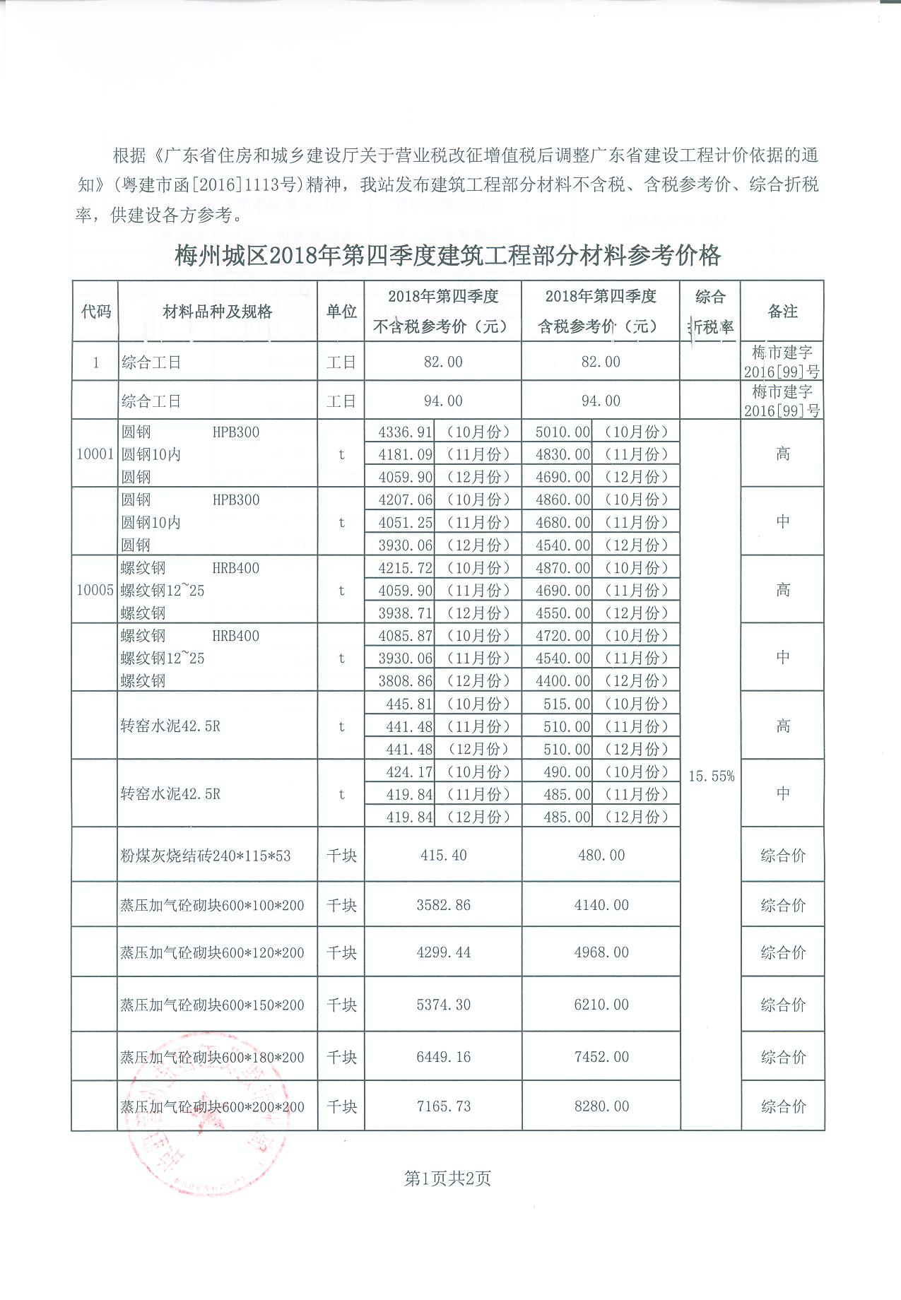 梅州市人民政府門戶網(wǎng)站 梅州市住房和城鄉(xiāng)建設(shè)局 建筑業(yè)管理 梅州城區(qū)2018年第四季度建筑工程部分材料參考價格
