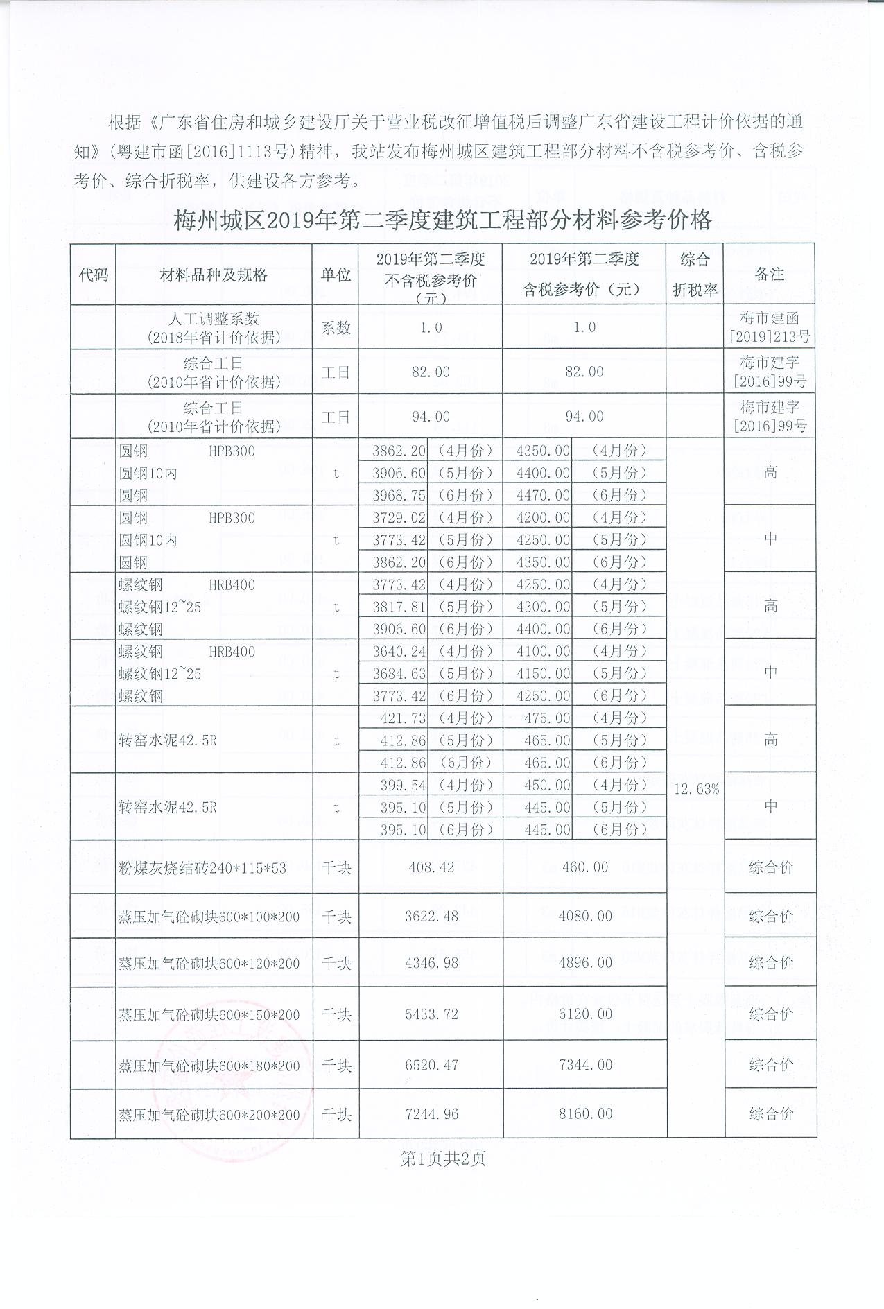 梅州市人民政府門戶網(wǎng)站 梅州市住房和城鄉(xiāng)建設(shè)局 建筑業(yè)管理 梅州城區(qū)2019年第二季度建筑工程部分材料參考價(jià)格