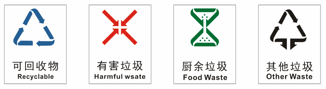 1.具體四類生活垃圾的大標(biāo)志如下: