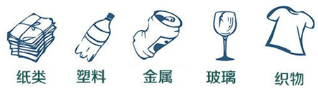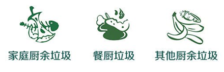 每類生活垃圾下設(shè)典型組分的小標(biāo)志,具體標(biāo)志如下: