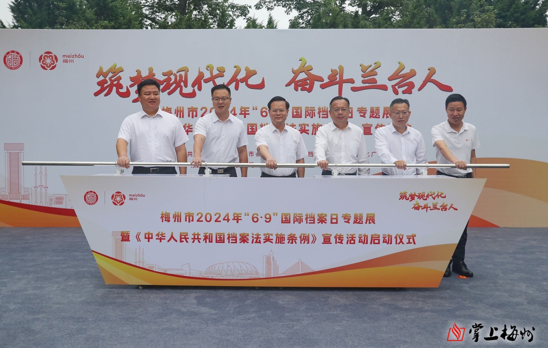 掌上梅州訊 今年6月9日是第17個(gè)國(guó)際檔案日。6月6日上午,中共梅州市委辦公室(市檔案局)、市檔案館聯(lián)合市文化廣電旅游局、廣東客都文旅有限公司在市劍英公園舉辦以“筑夢(mèng)現(xiàn)代化 奮斗蘭臺(tái)人”為主題的2024年“6·9”國(guó)際檔案日專(zhuān)題展暨《中華人民共和國(guó)檔案法實(shí)施條例》宣傳活動(dòng)。市委常委、秘書(shū)長(zhǎng)曾永祥,市委常委、副市長(zhǎng)趙東參加活動(dòng)。