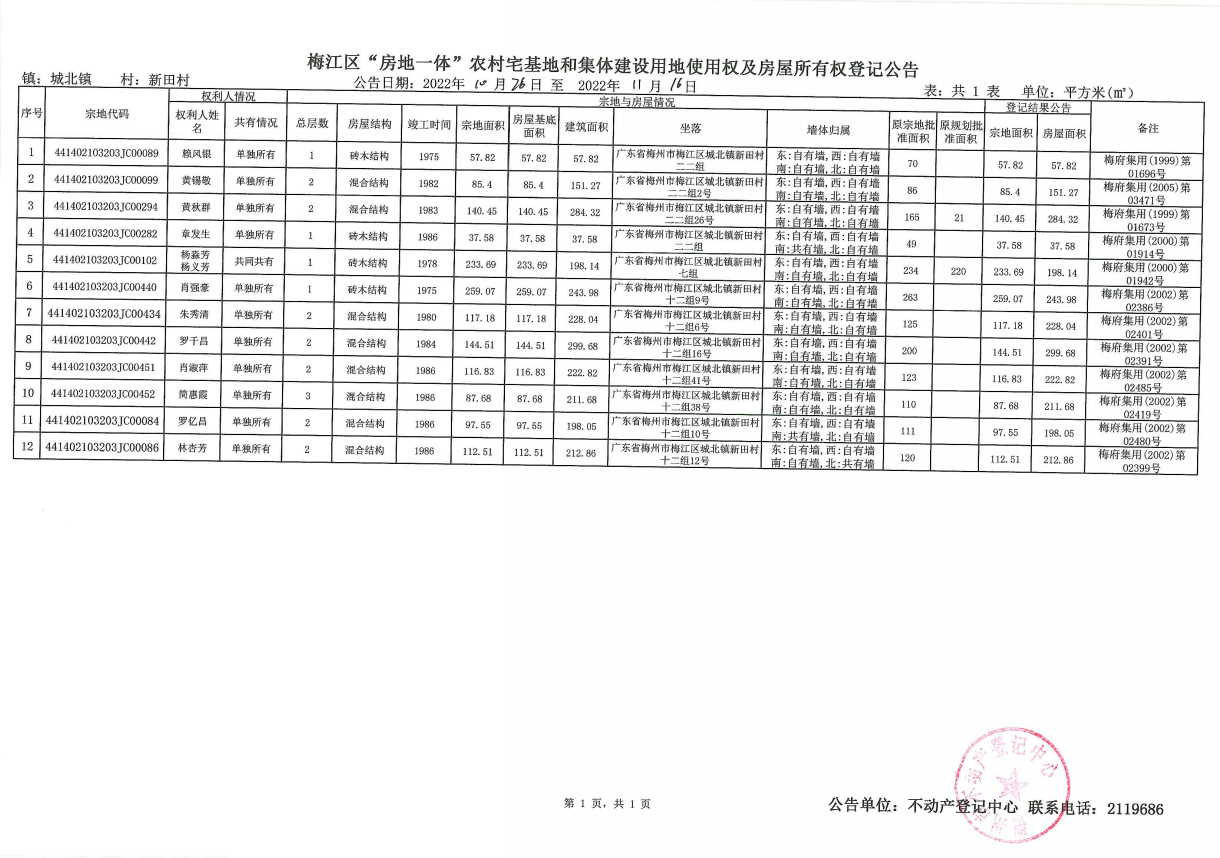 梅江區(qū)“房地一體”農(nóng)村宅基地和集體建設(shè)用地使用權(quán)及房屋所有權(quán)登記公告