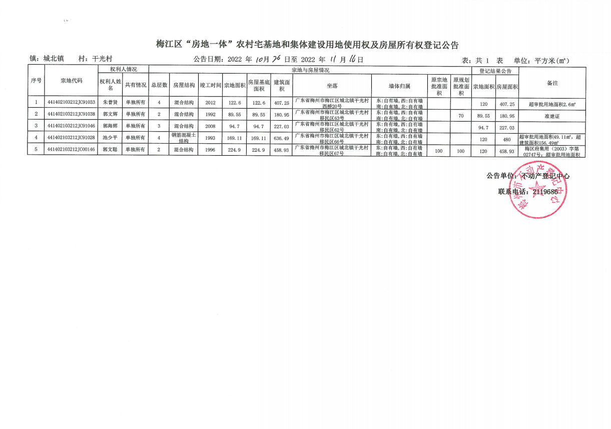 梅江區(qū)“房地一體”農(nóng)村宅基地和集體建設(shè)用地使用權(quán)及房屋所有權(quán)登記公告