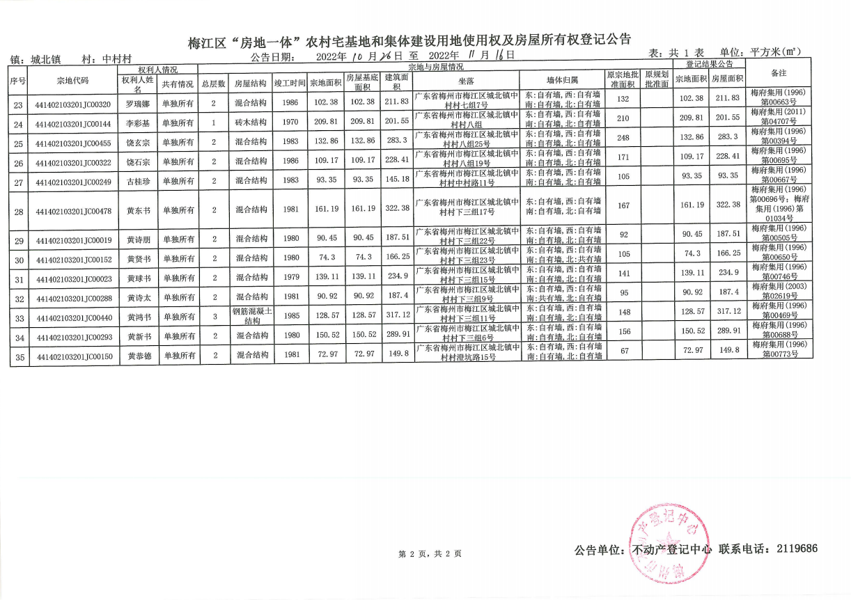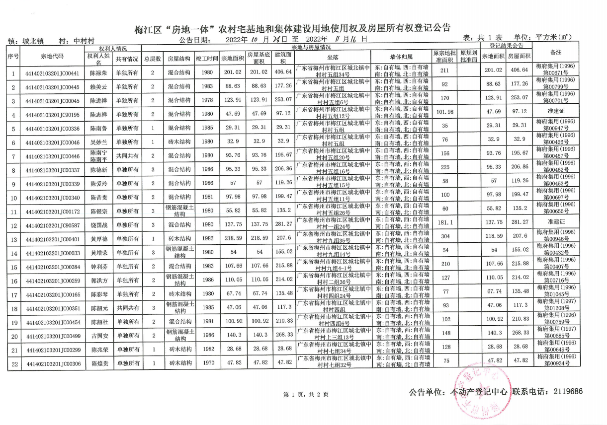 梅江區(qū)“房地一體”農(nóng)村宅基地和集體建設(shè)用地使用權(quán)及房屋所有權(quán)登記公告