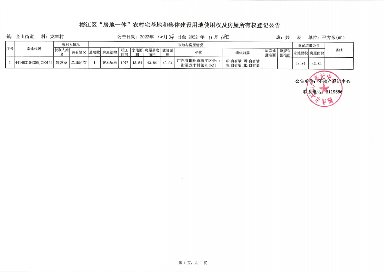 梅江區(qū)“房地一體”農(nóng)村宅基地和集體建設(shè)用地使用權(quán)及房屋所有權(quán)登記公告