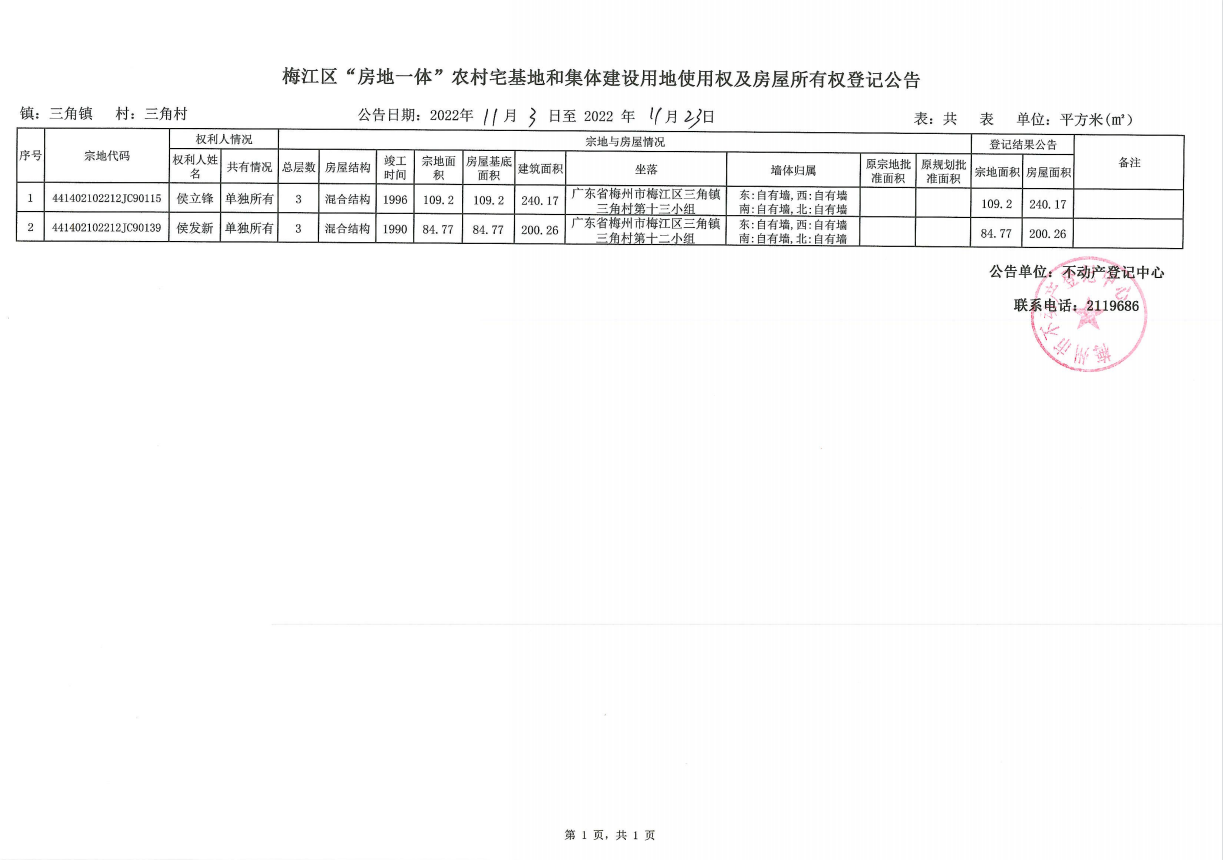 梅江區(qū)“房地一體”農(nóng)村宅基地和集體建設(shè)用地使用權(quán)及房屋所有權(quán)登記公告