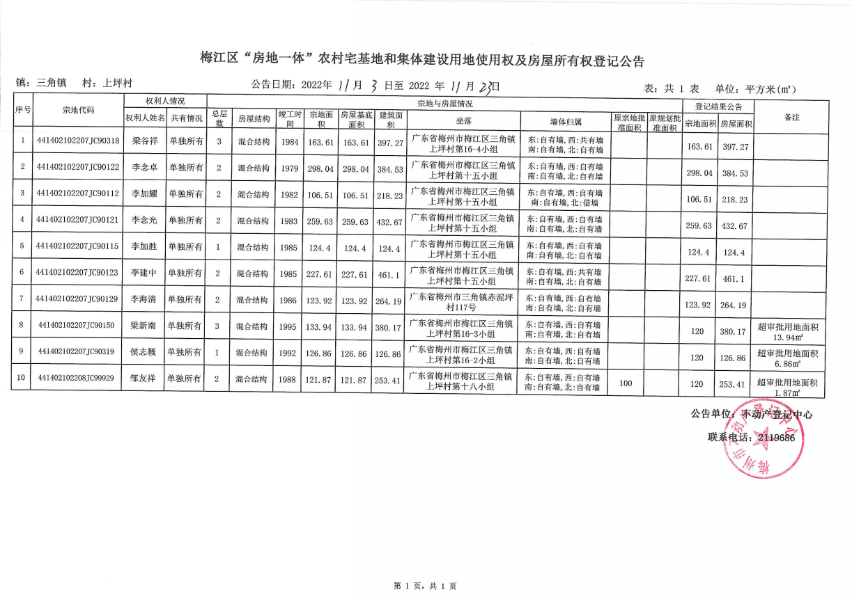 梅江區(qū)“房地一體”農(nóng)村宅基地和集體建設(shè)用地使用權(quán)及房屋所有權(quán)登記公告