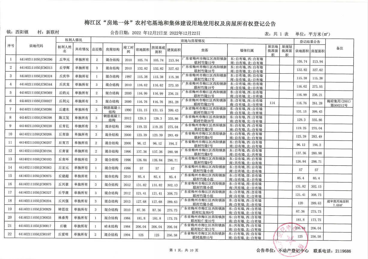 梅江區(qū)“房地一體”農(nóng)村宅基地和集體建設(shè)用地使用權(quán)及房屋所有權(quán)登記公告