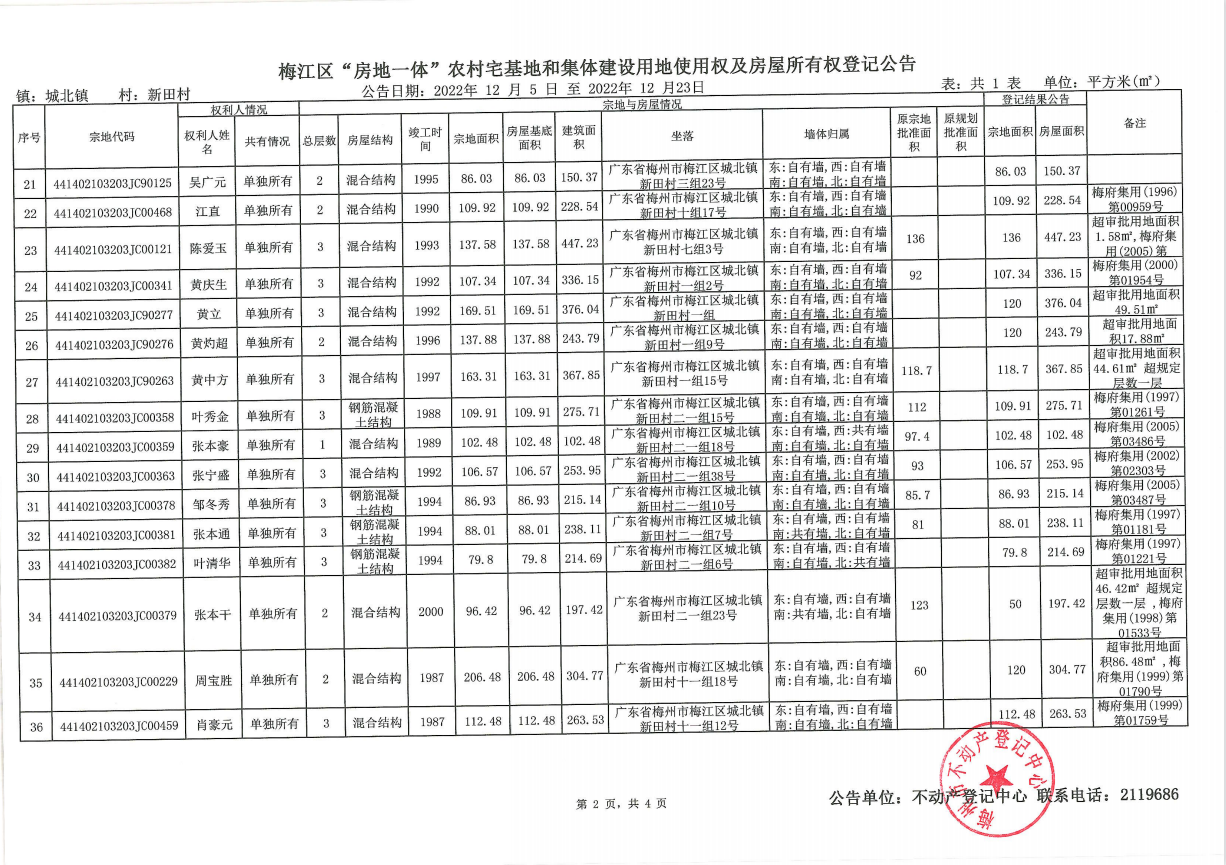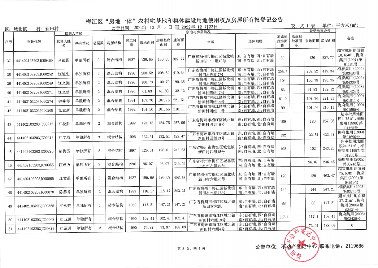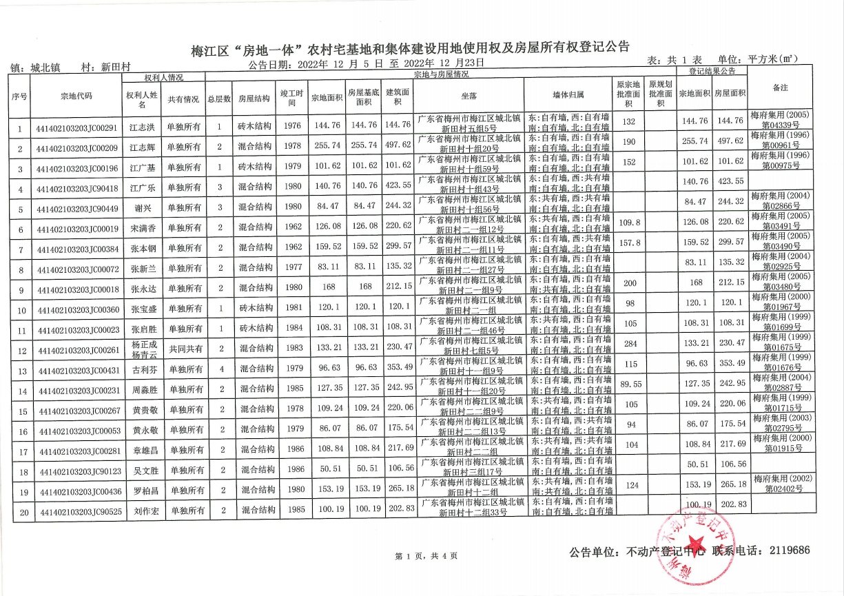 梅江區(qū)“房地一體”農(nóng)村宅基地和集體建設(shè)用地使用權(quán)及房屋所有權(quán)登記公告