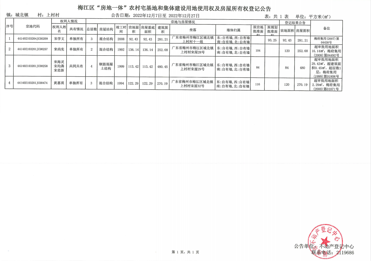 梅江區(qū)“房地一體”農(nóng)村宅基地和集體建設(shè)用地使用權(quán)及房屋所有權(quán)登記公告