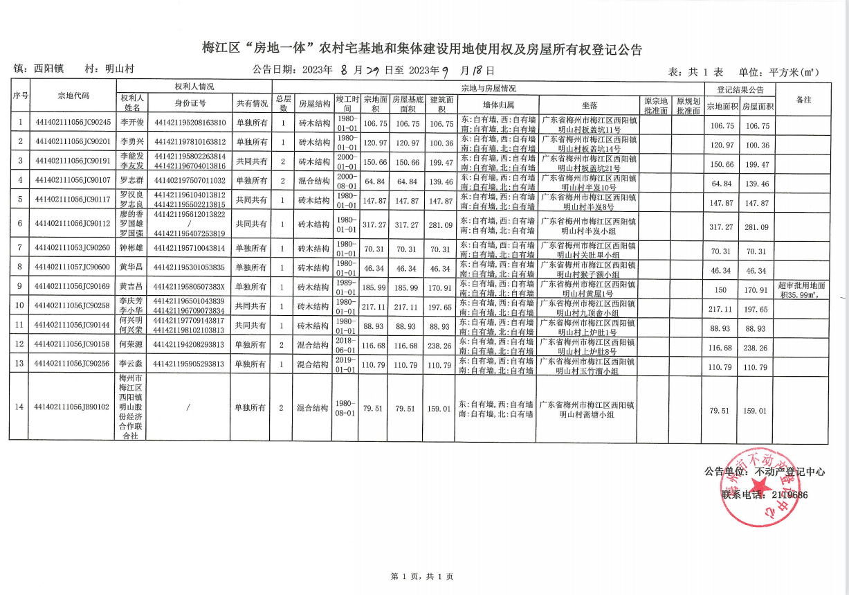 梅江區(qū)“房地一體”農(nóng)村宅基地和集體建設(shè)用地使用權(quán)及房屋所有權(quán)登記公告