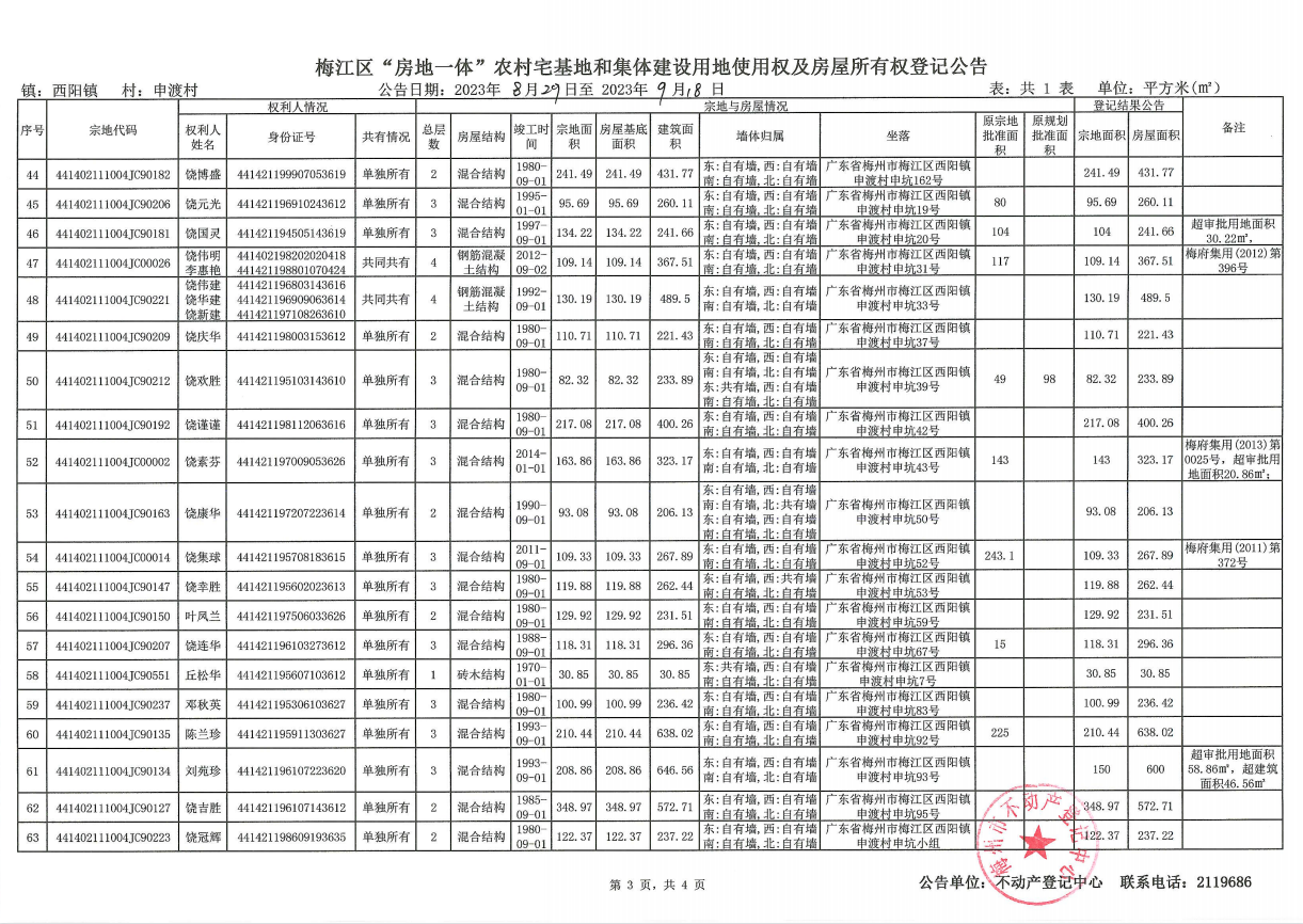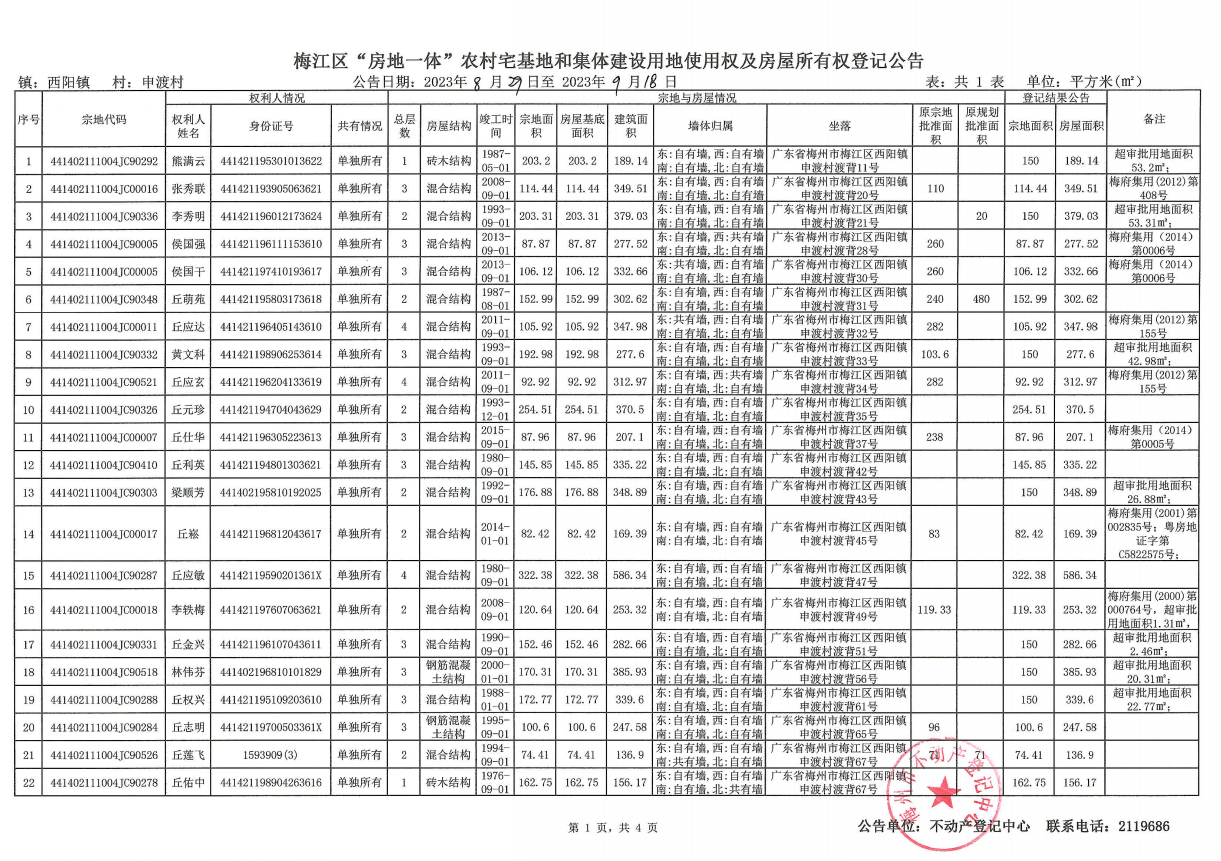 梅江區(qū)“房地一體”農(nóng)村宅基地和集體建設(shè)用地使用權(quán)及房屋所有權(quán)登記公告