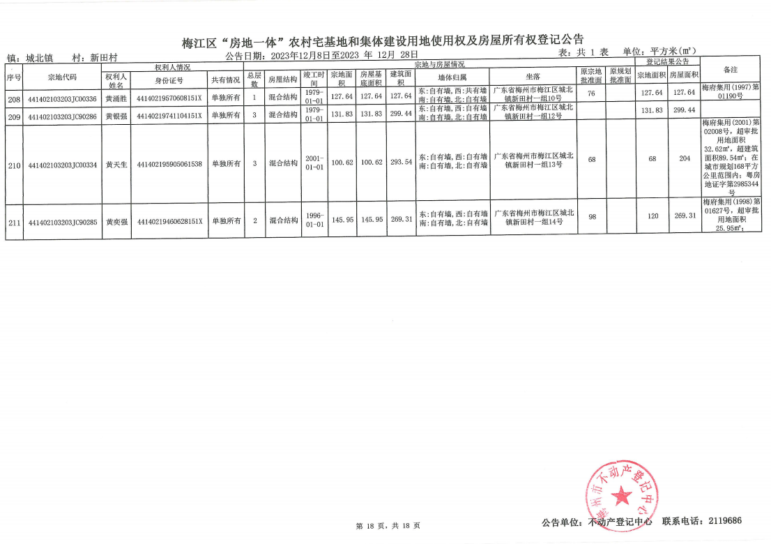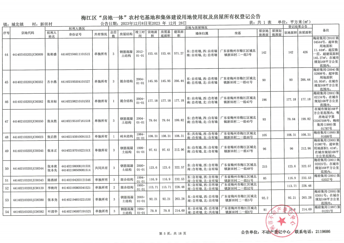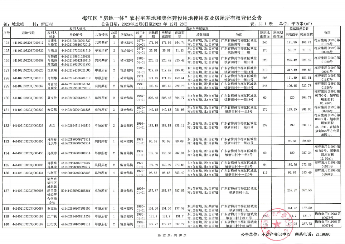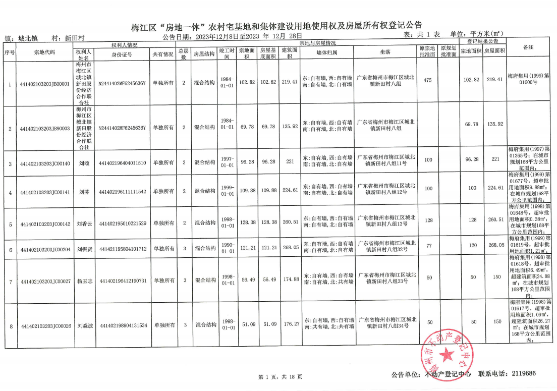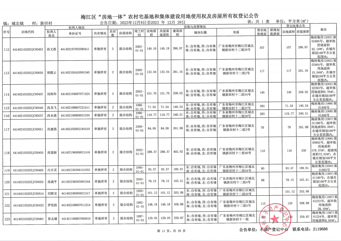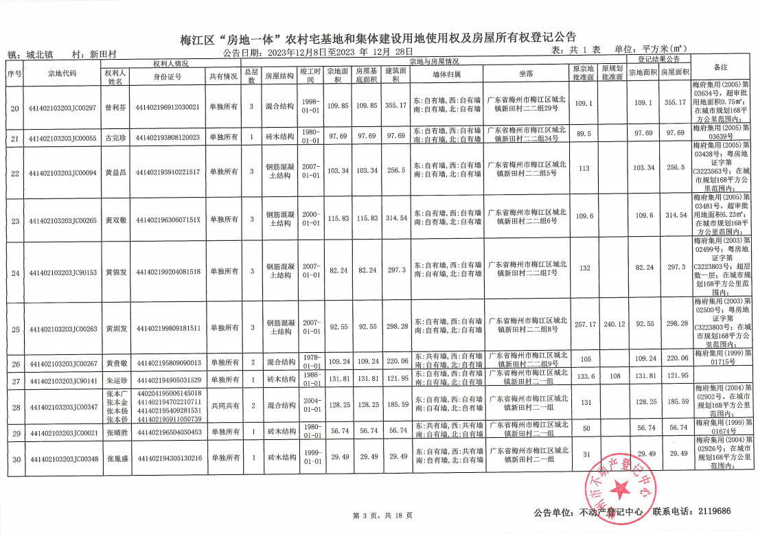 梅江區(qū)“房地一體”農(nóng)村宅基地和集體建設(shè)用地使用權(quán)及房屋所有權(quán)登記公告