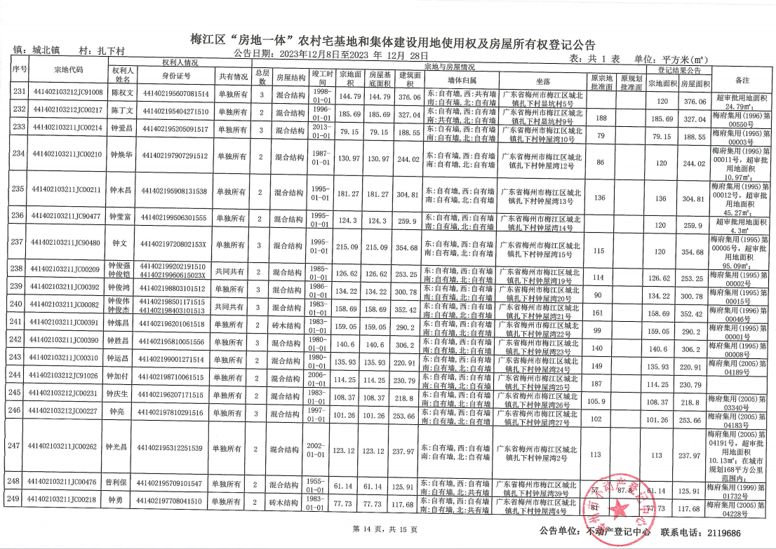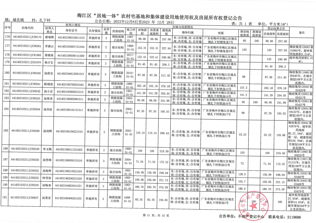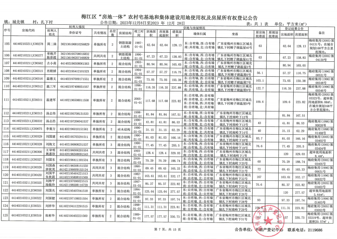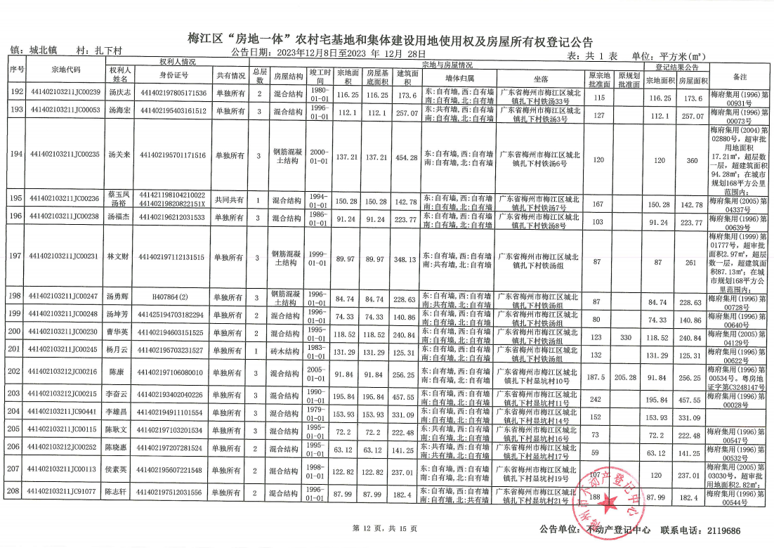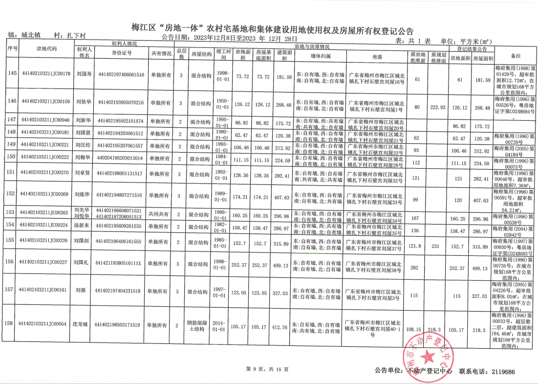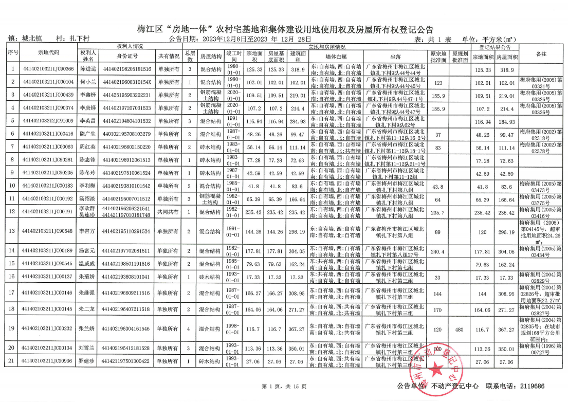 梅江區(qū)“房地一體”農(nóng)村宅基地和集體建設(shè)用地使用權(quán)及房屋所有權(quán)登記公告