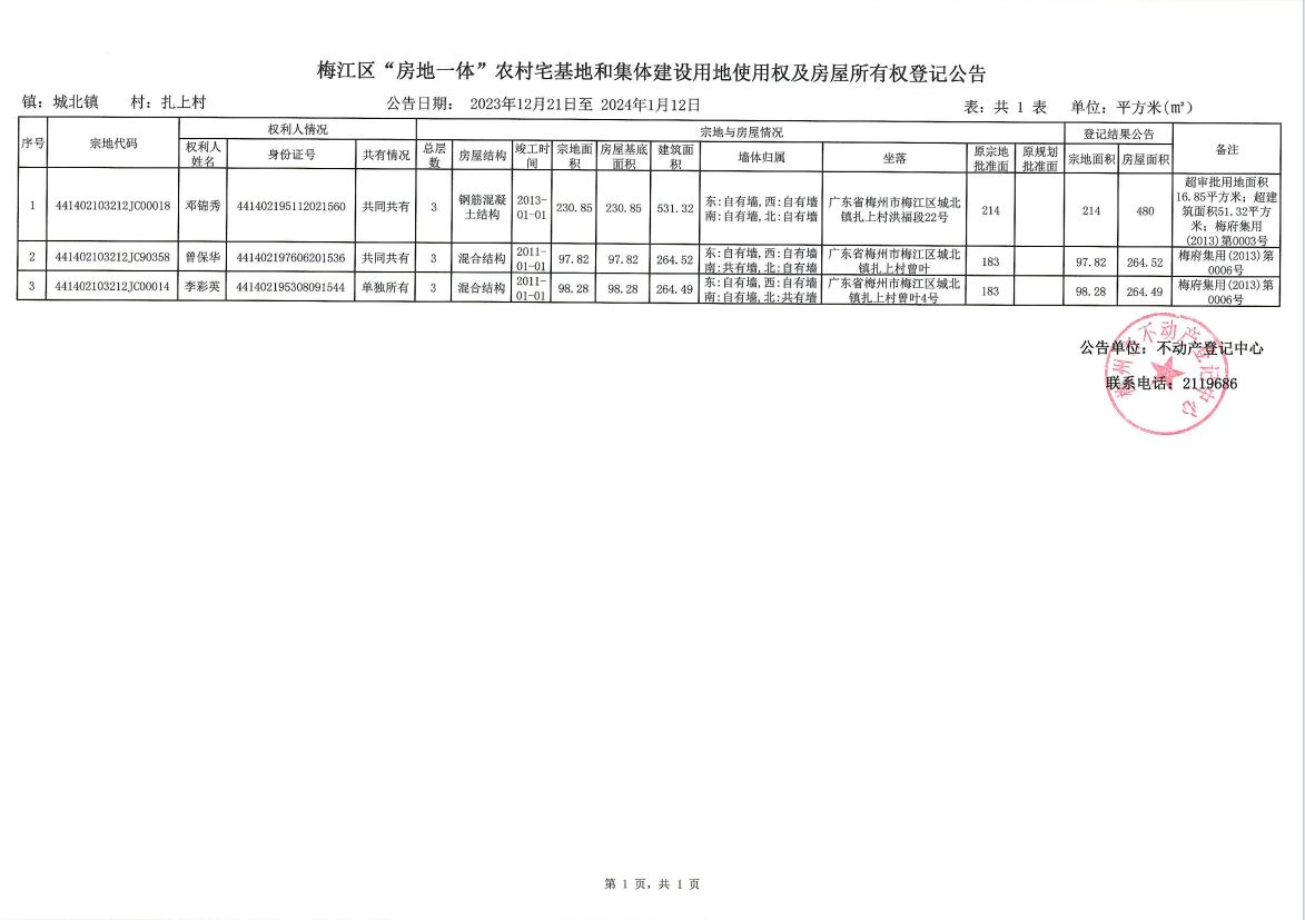 梅江區(qū)“房地一體”農(nóng)村宅基地和集體建設(shè)用地使用權(quán)及房屋所有權(quán)登記公告