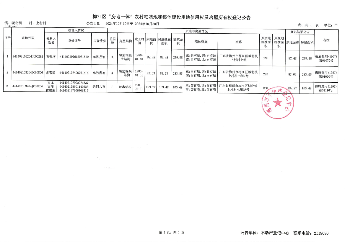梅江區(qū)“房地一體”農(nóng)村宅基地和集體建設(shè)用地使用權(quán)及房屋所有權(quán)登記公告
