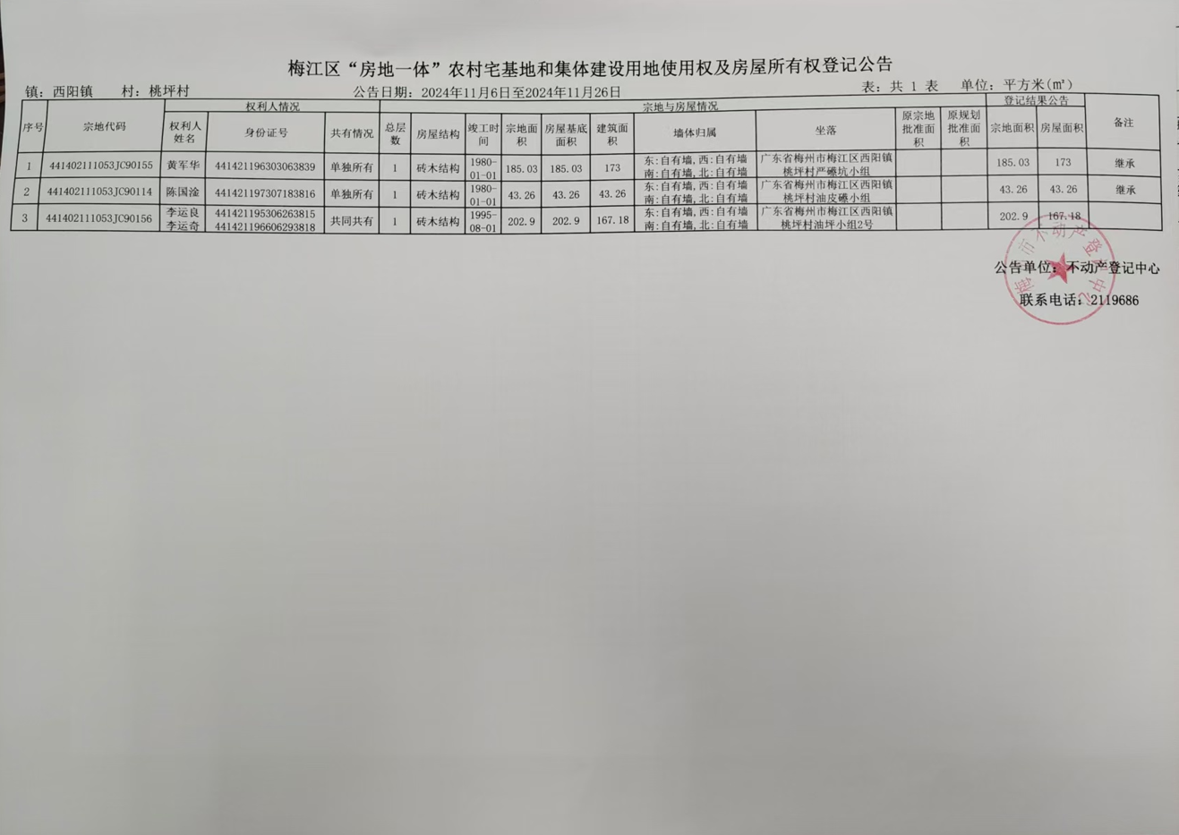 梅江區(qū)“房地一體”農(nóng)村宅基地和集體建設(shè)用地使用權(quán)及房屋所有權(quán)登記公告