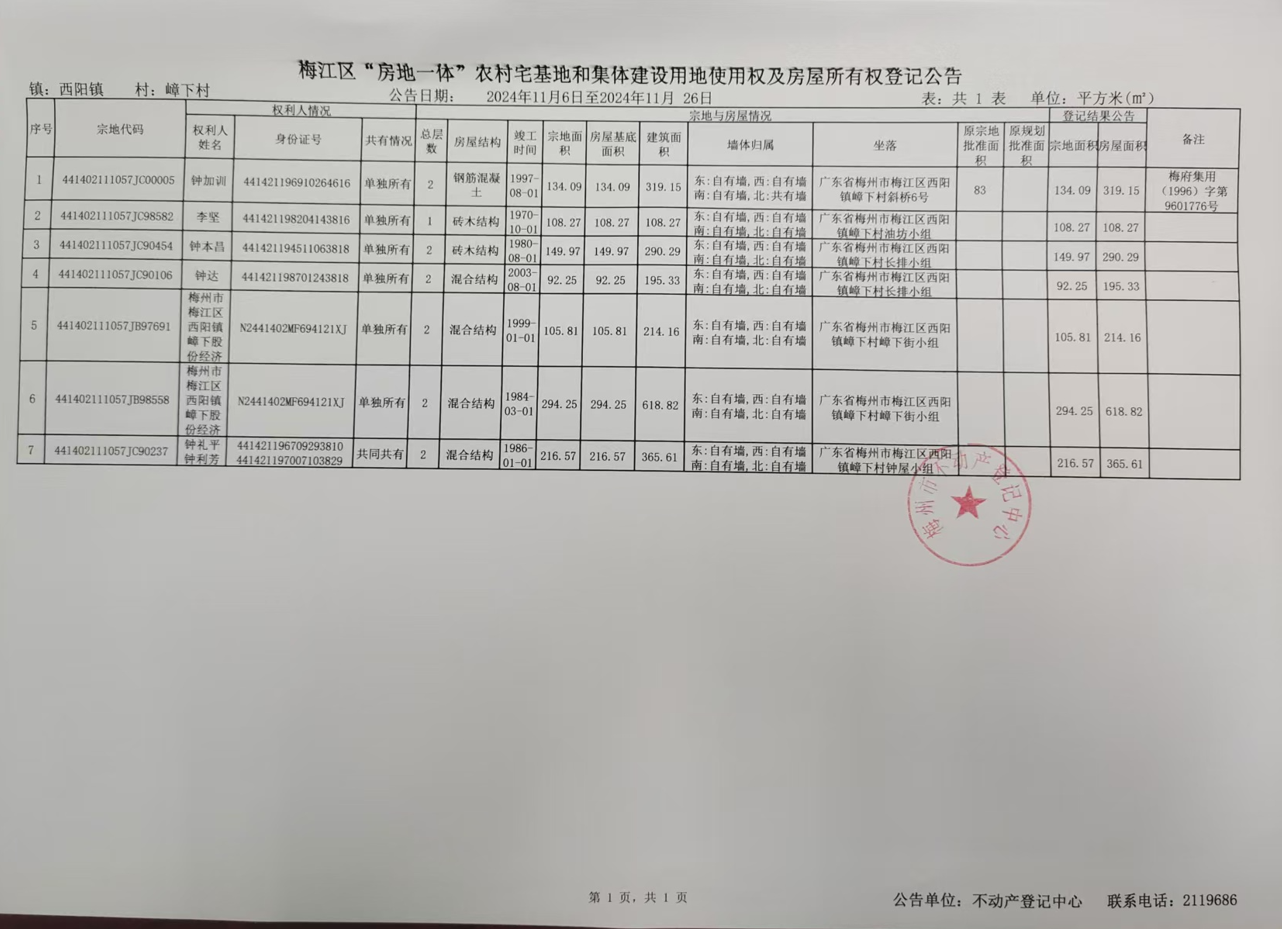 梅江區(qū)“房地一體”農(nóng)村宅基地和集體建設(shè)用地使用權(quán)及房屋所有權(quán)登記公告