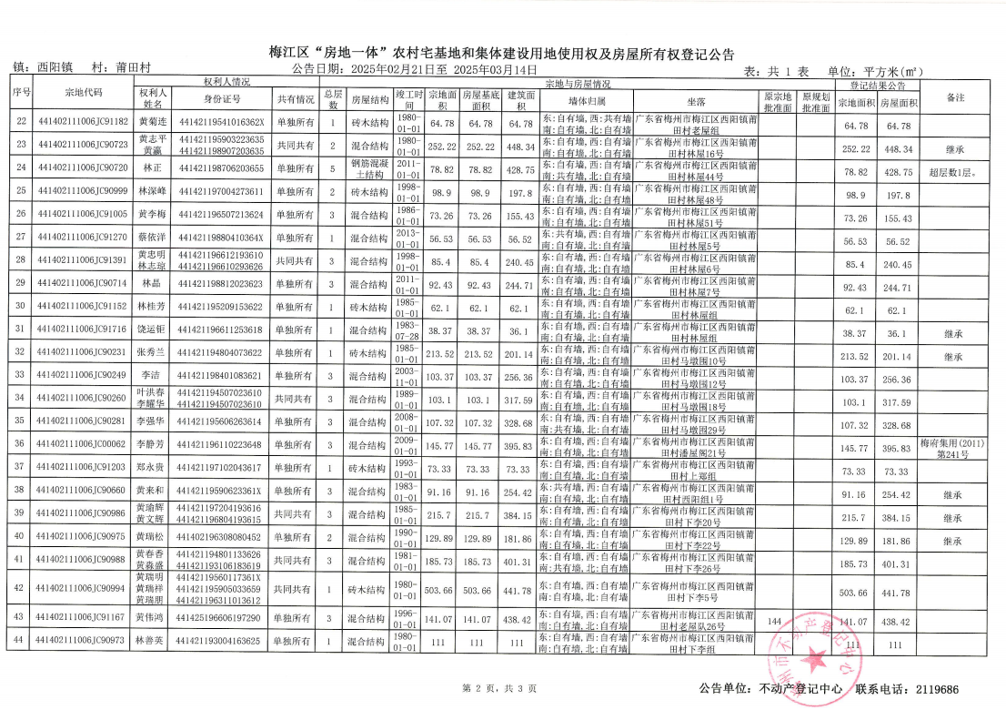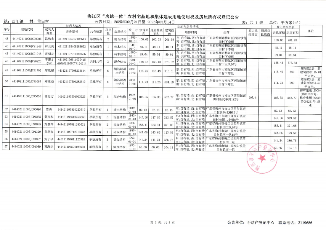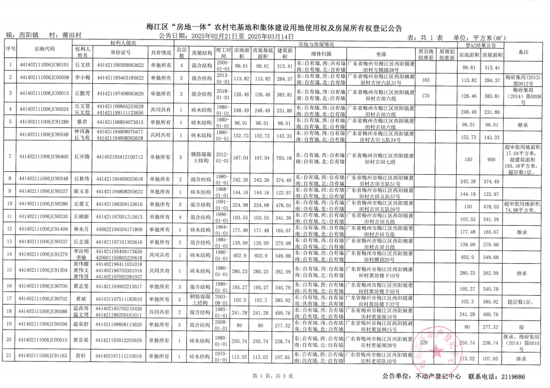梅江區(qū)“房地一體”農(nóng)村宅基地和集體建設用地使用權(quán)及房屋所有權(quán)登記公告