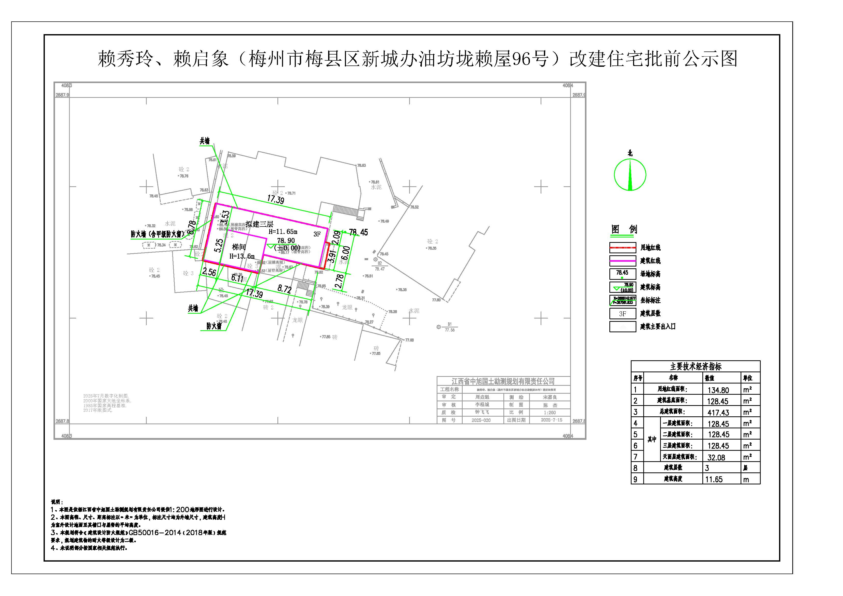 賴秀玲、賴啟象原房屋位于梅州市梅縣區(qū)新城辦油坊垅賴屋96號,現(xiàn)賴秀玲、賴啟象業(yè)主擬對梅州市梅縣區(qū)新城辦油坊垅賴屋96號房屋進(jìn)行改建。具體報建方案為:建筑基底面積:128.45平方米,層數(shù):3層及天面樓梯間,總建筑面積:417.43平方米。本圖僅為示意圖,準(zhǔn)確數(shù)據(jù)以最后審批為準(zhǔn)。
