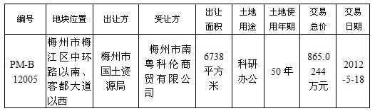 2012年梅州市國有建設用地使用權出讓結果公示5
