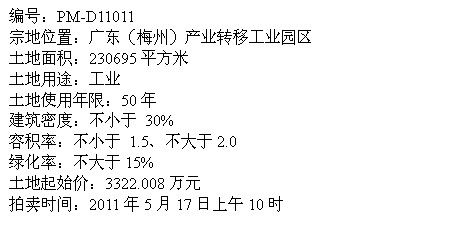 梅州市國有土地使用權(quán)公開拍賣交易信息PM-D11011