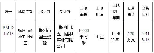 梅州市人民政府門戶網(wǎng)站 梅州市自然資源局 土地交易 2011年梅州市國有土地使用權(quán)出讓結(jié)果公示13