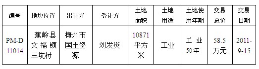 2011年梅州市國有建設(shè)用地使用權(quán)轉(zhuǎn)讓結(jié)果公示20