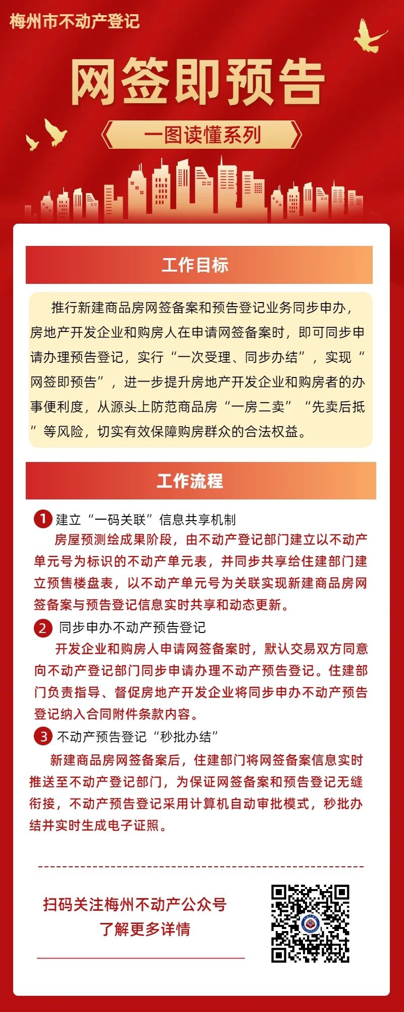 我市推行“網(wǎng)簽即預告”不動產(chǎn)新模式是從源頭上防范商品房“一房二賣”“先賣后抵”等引發(fā)的風險,將新建商品房網(wǎng)簽備案和不動產(chǎn)預告登記業(yè)務(wù)同步辦理,房地產(chǎn)開發(fā)企業(yè)和購房人在申請網(wǎng)簽備案時,系統(tǒng)智能同步申請辦理不動產(chǎn)預告登記,實行“一次受理、同步辦結(jié)”,切實維護購房人合法權(quán)益。主要做法一是指導、督促房地產(chǎn)開發(fā)企業(yè)將同步申辦不動產(chǎn)預告登記納入購房合同約定條款。二是建立以不動產(chǎn)單元號為關(guān)聯(lián)的“一碼關(guān)聯(lián)”信息共享機制,實現(xiàn)一手房網(wǎng)簽備案與預告登記信息實時共享和動態(tài)更新。三是通過不動產(chǎn)登記系統(tǒng)自動受理申請、自動審核登簿,實現(xiàn)不動產(chǎn)預告登記秒批辦結(jié)并實時生成電子證照。在新模式下進一步簡化了辦理流程,減少了群眾跑腿次數(shù),縮短了辦理時間,有效提升了不動產(chǎn)登記的便利度和滿意度。截至目前,全市共核發(fā)“網(wǎng)簽即預告”電子證照5941本。