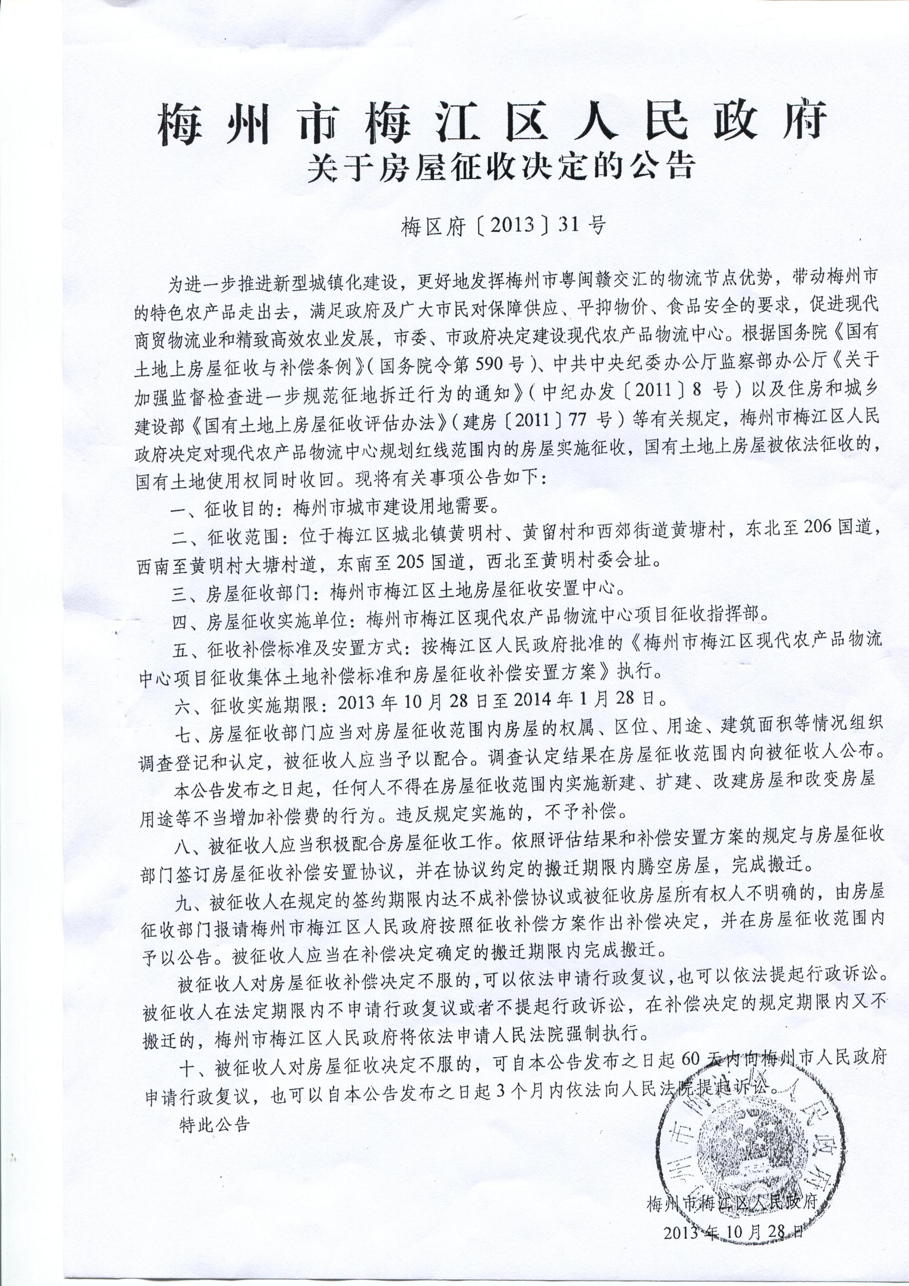 梅江區(qū)人民政府關于房屋征收決定的公告
