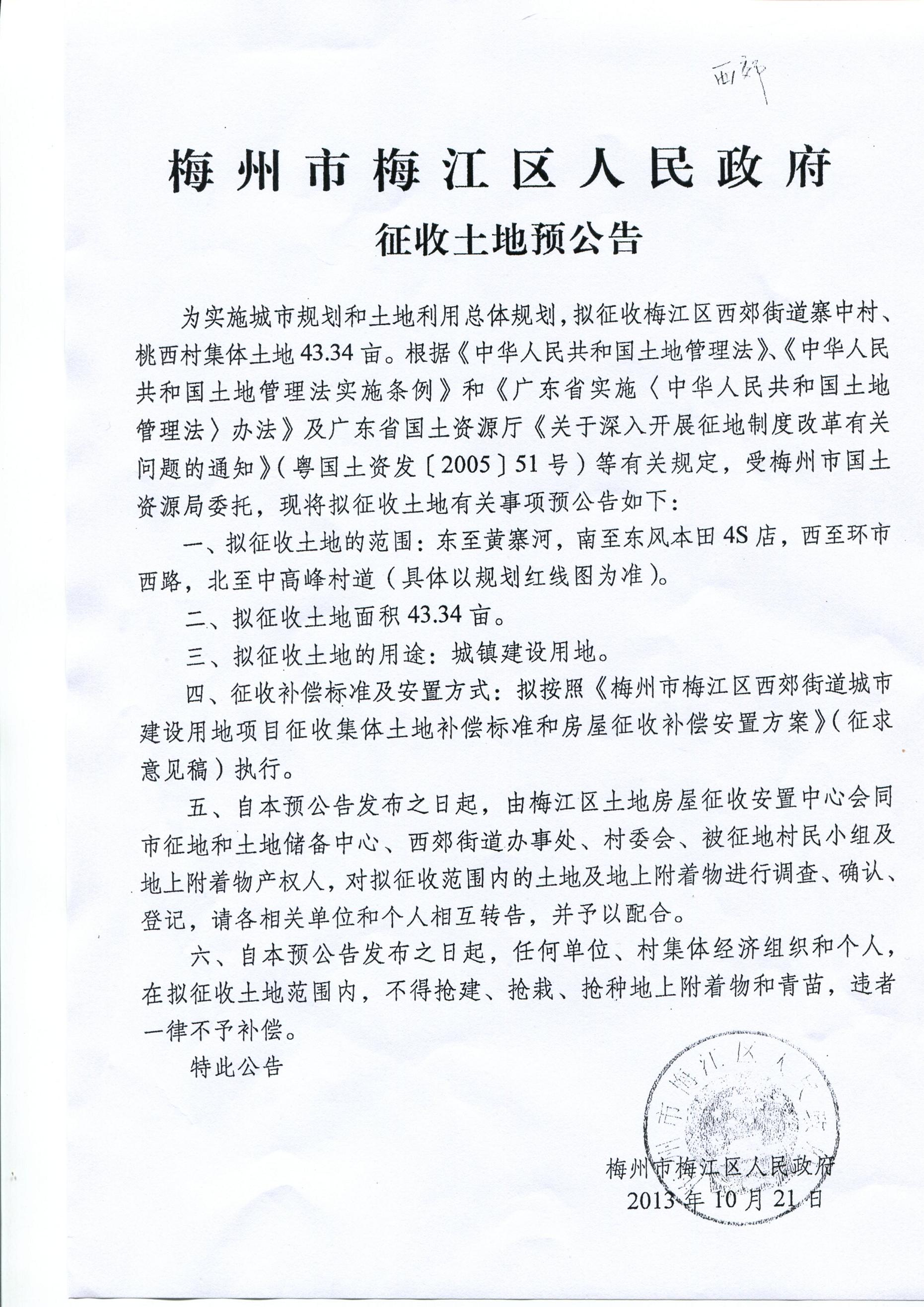梅州市人民政府門戶網(wǎng)站 梅州市自然資源局 征地公告 梅江區(qū)人民政府征收土地預(yù)公告