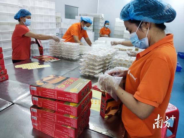 大埔省級蜜柚現(xiàn)代農業(yè)產業(yè)園內,廣東通美食品有限公司月餅生產線運轉不停。馬吉池 攝