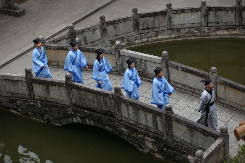 在明清時(shí)期,學(xué)宮開學(xué)第一天,秀才們穿過欞星門,由縣官帶領(lǐng)游泮池,過狀元橋,穿大成門,就來到大成殿。這樣一條路徑,就成了獨(dú)特的“開學(xué)典禮”。