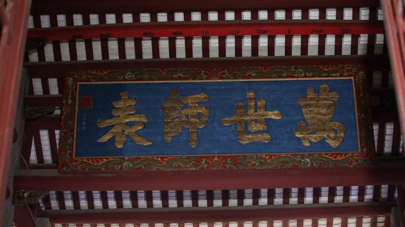 清雍正皇帝親書“大成門”拓匾懸掛于門上。大成門對(duì)聯(lián):“先覺先知為萬古倫常立極 至誠至圣與兩間功化同流”,為清雍正皇帝親書拓匾。
