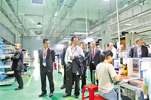 與會(huì)領(lǐng)導(dǎo)嘉賓參觀梅州市鴻富瀚科技有限公司生產(chǎn)車間。