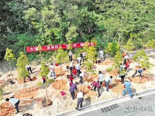 與會(huì)領(lǐng)導(dǎo)嘉賓揮鍬鏟土種下一批“客商林”“僑心林”,助力綠美大埔建設(shè)。
