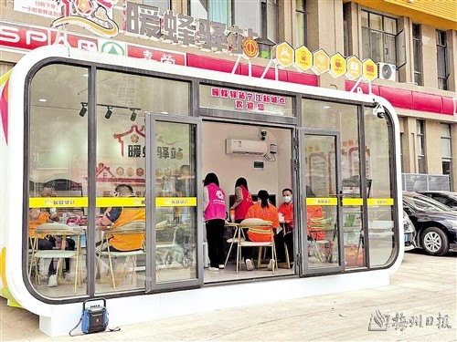 暖蜂驛站寧江新城點環(huán)境優(yōu)美、設(shè)施齊全,為新就業(yè)群體的戶外勞動者提供了一個溫情港灣。