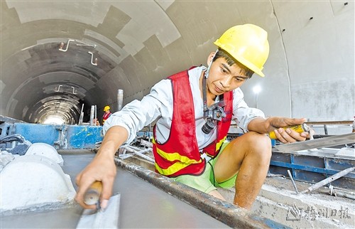 梅龍高鐵項目建設者奮戰(zhàn)工地,力爭項目早日建成通車。(林翔 攝)