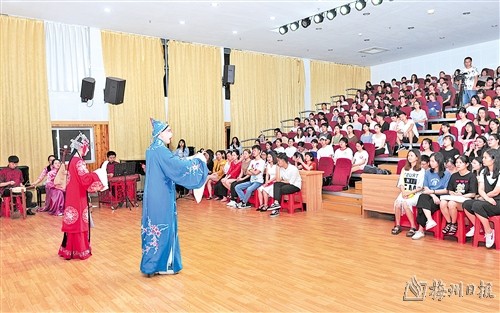廣東漢劇走進校園展演。(鐘小豐 攝)