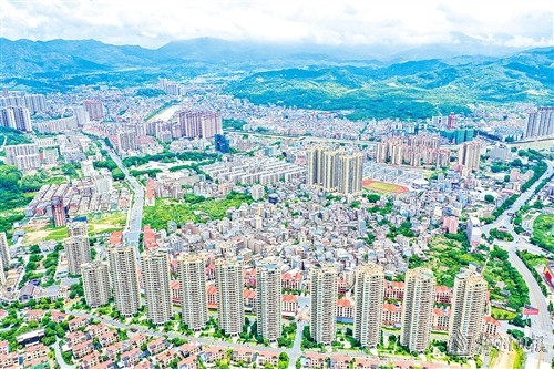 豐順縣堅持以“百千萬工程”為統(tǒng)領(lǐng)推動經(jīng)濟社會高質(zhì)量發(fā)展,圖為蓬勃發(fā)展的豐順縣城。