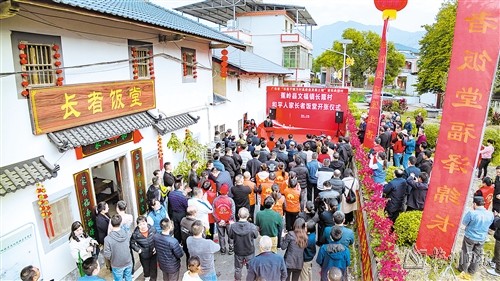 1月13日,蕉嶺縣文福鎮(zhèn)長隆村和平人家長者飯?zhí)媒遗七\(yùn)營。省市縣領(lǐng)導(dǎo)嘉賓、孝廉慈善基金會代表、熱心鄉(xiāng)賢代表等200多人參加揭牌活動。